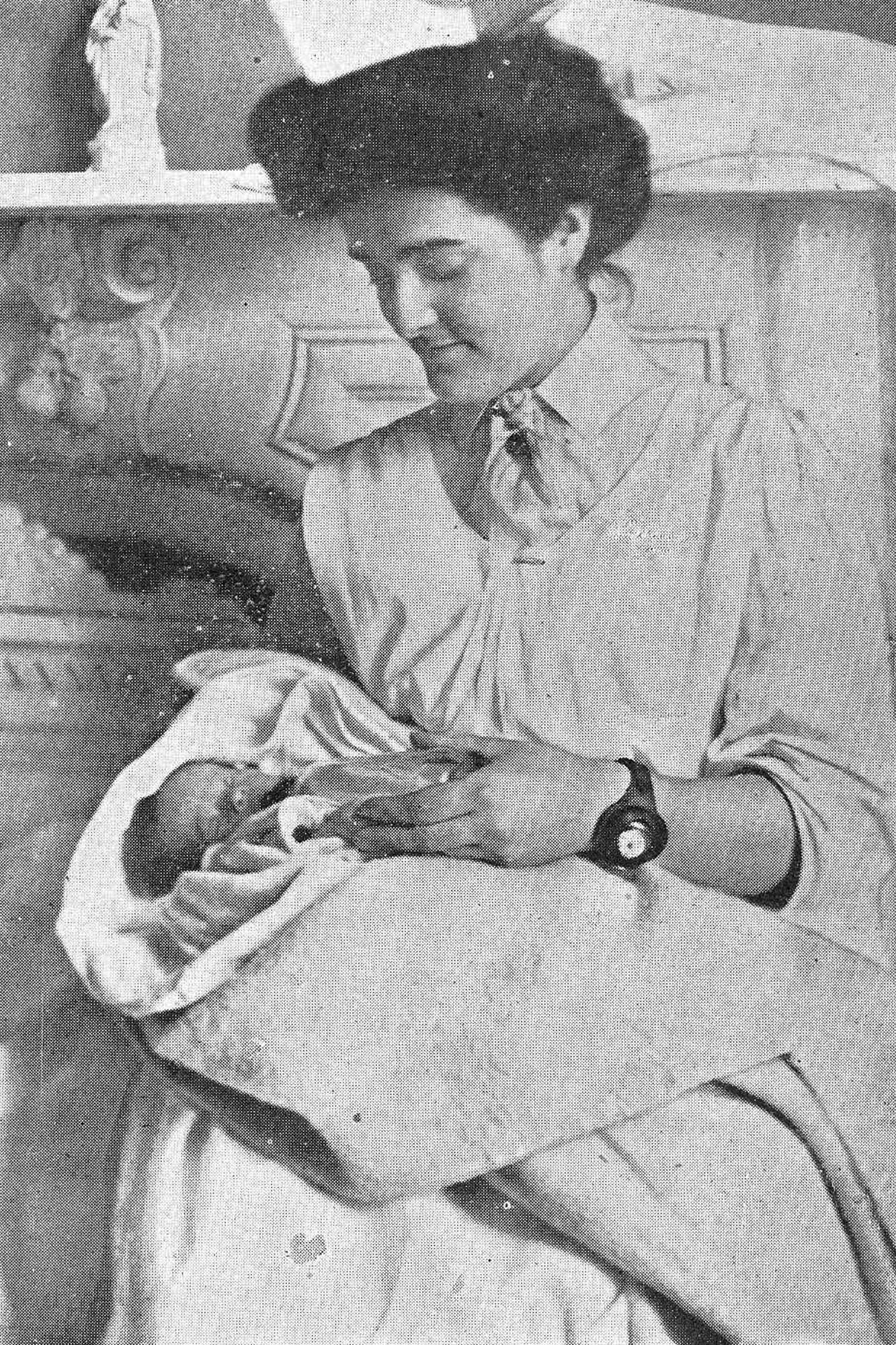 Roland-Joseph Brisebois (1907-?), un bébé de 5 mois, est le tout premier patient de l’Hôpital Sainte-Justine. Dre Irma LeVasseur soigne Roland-Joseph dans son propre logement avant qu’il ne soit transféré, le 30 novembre 1907, dans le Refuge des petits malades, appelé à devenir le premier Hôpital Sainte-Justine, sur la rue Saint-Denis, entre la rue Roy et l’avenue des Pins. Premier succès pour l’Hôpital naissant : 76 jours plus tard, le petit Brisebois retourne chez lui dans un état de santé jugé « amélioré ».