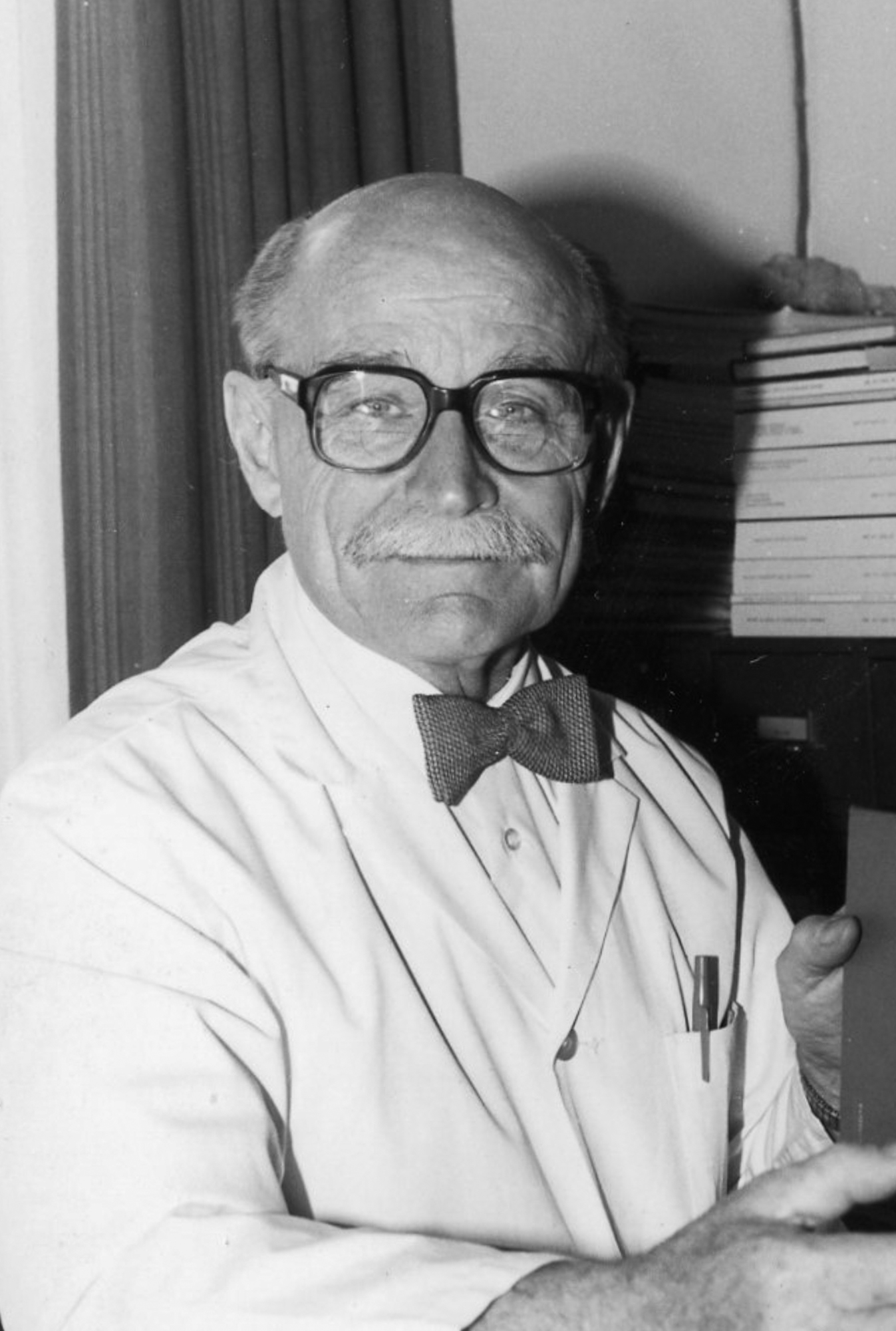 Dr Albert Royer (1918-2001) est le premier pédiatre canadien-français à réussir l’examen de Fellow du Collège royal des médecins et chirurgiens du Canada. Colonel commandant dans le Corps médical des Forces armées canadiennes, diplômé de Harvard en hématologie et de l’Université de Montréal en pédiatrie, Albert Royer est médecin résident à l’Hôpital Sainte-Justine en 1943, où il demeure actif plus de 50 ans, jusqu’en 1996. Pionnier du Laboratoire d’hématologie et de la banque de sang, professeur titulaire au Département de pédiatrie, puis directeur du Département de 1961 à 1968, il participe à la promotion de l’allaitement maternel, à l’accueil des enfants prématurés à Sainte-Justine, au développement de Cliniques dans le Grand Nord québécois, à l’implantation de soins pédiatriques en Tunisie et à la formation de générations de médecin avec conviction et éloquence. En 1981, il devient le premier Québécois à être récompensé par le prestigieux Prix Ross de la Société canadienne de pédiatrie. En fin de carrière, Albert Royer prend part à la conception d’un hôpital pour enfants au Sénégal, avec l’honneur de le voir nommé en son nom : l’Hôpital d’enfants Albert Royer Dakar. Au CHU Sainte-Justine, l’un de nos amphithéâtres situé à l'étage A porte également, et très fièrement, son nom.