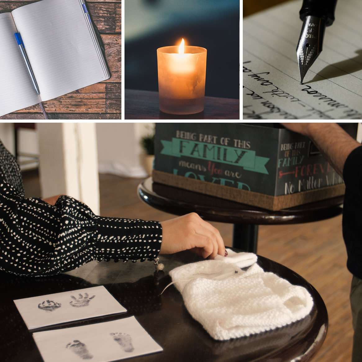 - Écrire une lettre à votre bébé (certains parents choisissent de la laisser au chevet du bébé, de la mettre dans une boîte souvenir ou de l’enterrer symboliquement)