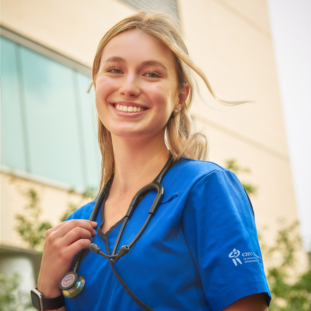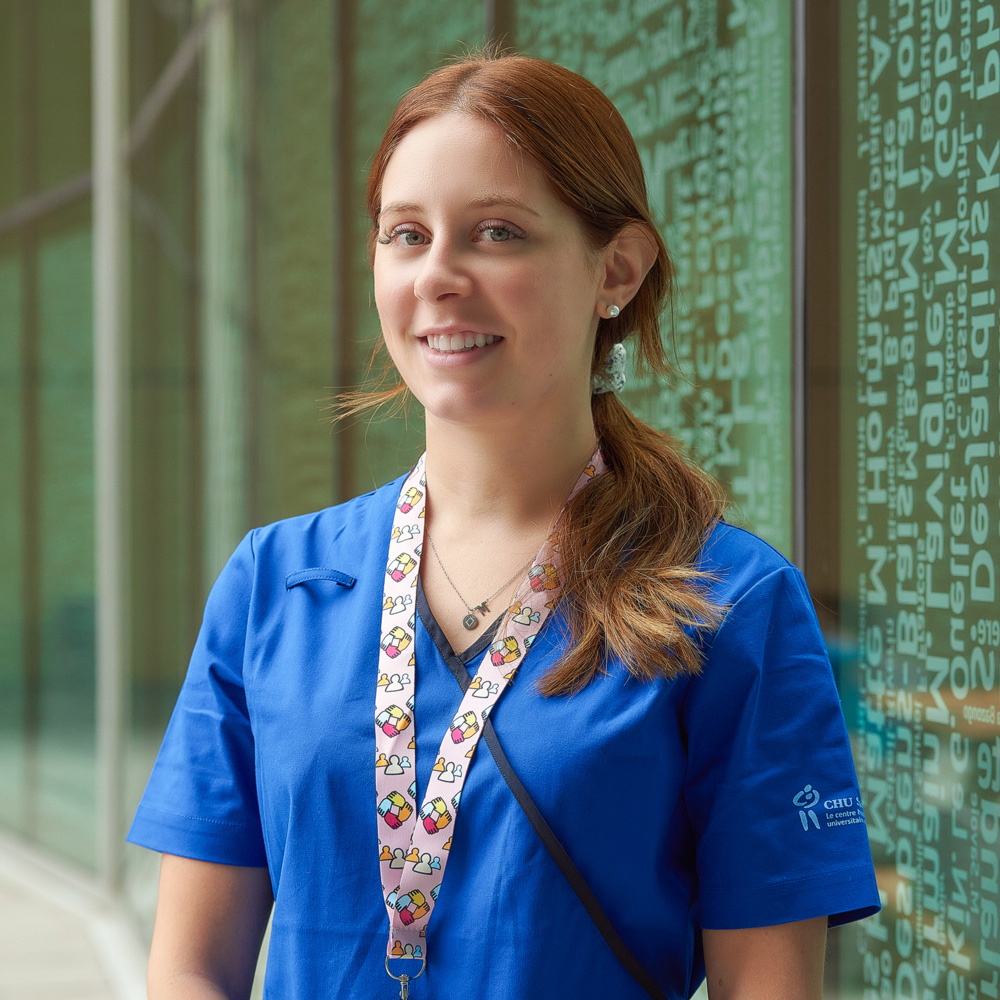 « Dès mes premiers jours en tant qu’infirmière à l’Unité d’hématologie-oncologie du CHU Sainte-Justine, j’ai été marquée par l’esprit d’entraide qui y règne. Que ce soit par l’offre de formation qui nous est donnée afin de nous soutenir dans notre intégration ou encore, par nos collègues qui nous prêtent main-forte, on sent qu’on fait partie d’une équipe soudée! » – Ariane, nouvelle infirmière à l’Unité d’hématologie-oncologie du CHU Sainte-Justine.
