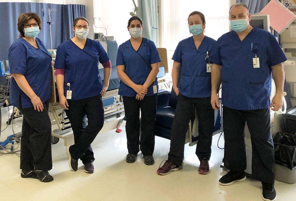 Avec la COVID-19, tous les membres de l’équipe font des pieds et des mains pour assurer la sécurité de tous lorsqu’un patient atteint doit recevoir un traitement, incluant la réorganisation des locaux, l’aménagement de l’horaire des soins et, bien sûr, le port de l’équipement de protection. Il s’agit d’un bel exemple de rigueur dont fait preuve chaque membre du groupe.