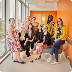 Marilou Burelle, Stéphanie Hogue, Cynthia Garcia Becerra, Isabel Fernandez, Sophie Fournier, Christine Tremblay, Marie-Sophie Cognard, Yekaterina Skakun, Fabiolas Jaccès | Membres du comité, absents sur la photo : Audrey Larone Juneau, Martine Morrier, Mélissa Savaria, Mylène Francoeur, Lumba Yvette Kanfwa, Sabrina Larose, Sophie Gravel | Photo : © CHU Sainte-Justine (Véronique Lavoie)