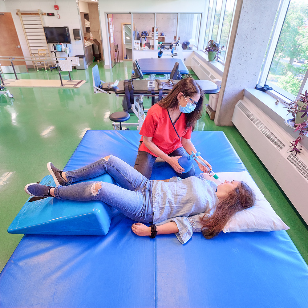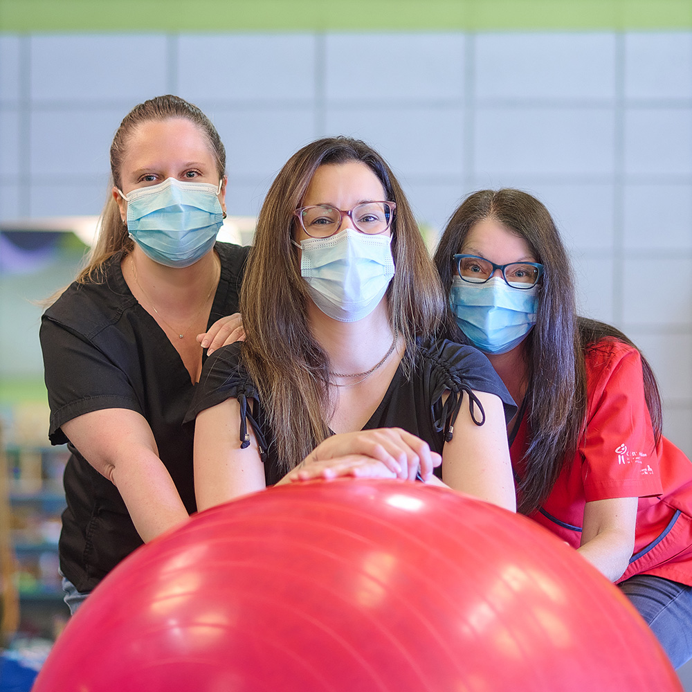 « Je vois les mêmes jeunes à chaque jour pour leur thérapie respiratoire. Je fais avec eux des exercices respiratoires qui leur permettent de maintenir leur musculature afin que leurs poumons gardent leur volume. La plupart des jeunes que je suis ont des maladies neuromusculaires dégénératives. Je les aide à rester autonomes le plus longtemps possible sur le plan respiratoire. Il y a beaucoup de petits accomplissements et de victoires à travers le temps! », indique Marie.