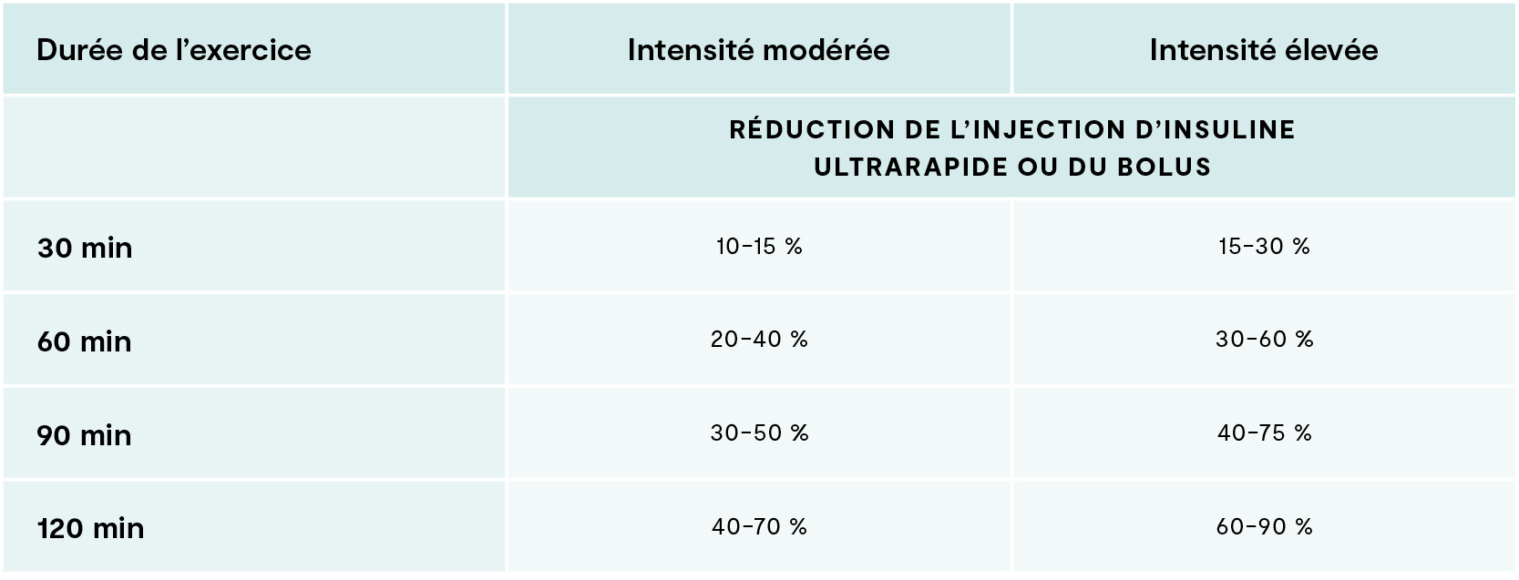 Réduction des doses d’insuline ultrarapide en prévision d’un exercice modéré à intense survenant dans les deux heures suivant une injection