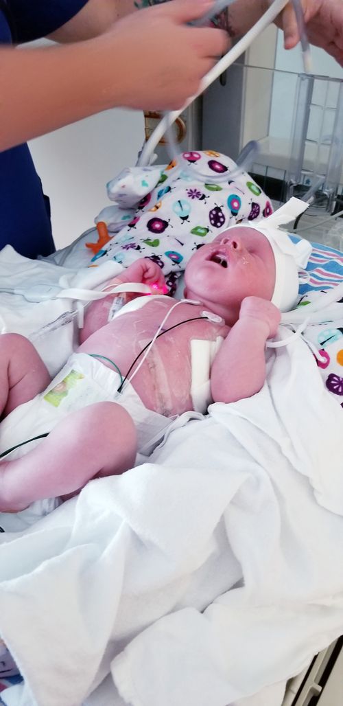 Alexandre est né par voie basse à 14h20 le 30 mai 2017. Il allait bien malgré sa condition. Il a été pris en charge immédiatement par une équipe de la néonatalogie et son papa Serge est monté à l’étage avec lui 15 minutes après sa naissance.
