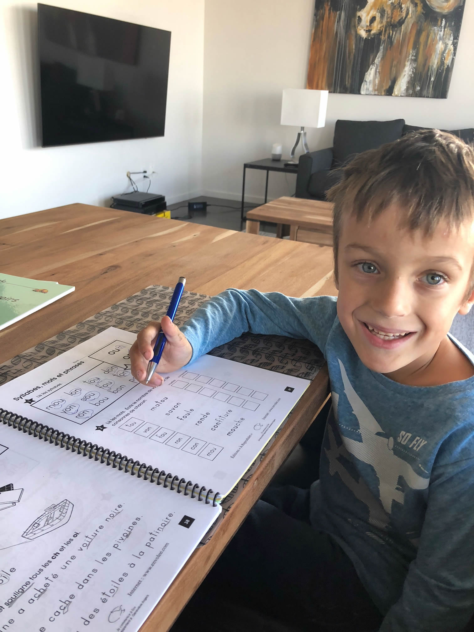 C’est un petit garçon enjoué qui aime beaucoup rire. Il a encore certains retards et certains apprentissages restent un défi pour lui. À l’école, il fonctionne bien et à son rythme. Il est dans une classe adaptée pour bien l’encadrer.