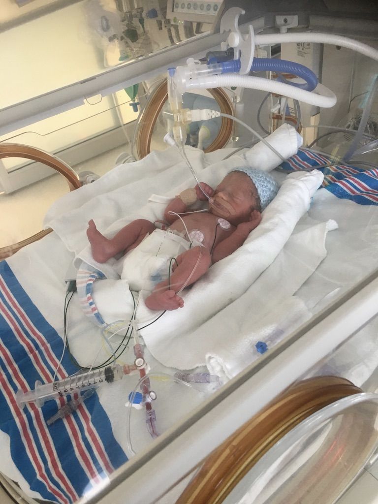 Lorsque la mère de Lucas est allée consulter à l’urgence gynécologique pour des maux de ventre causés par ses fibromes utérins, elle était loin de s’imaginer que Lucas allait naître 36 heures plus tard. Tout a été fait pour essayer de calmer les contractions, mais lorsque Lucas a fini par se retrouver en détresse, une césarienne d’urgence sous anesthésie générale a dû être pratiquée.
