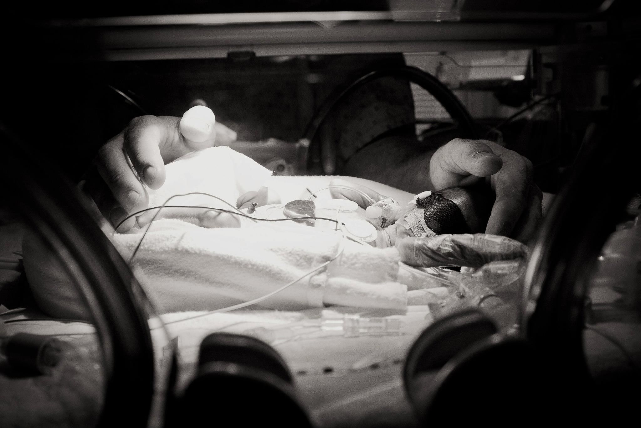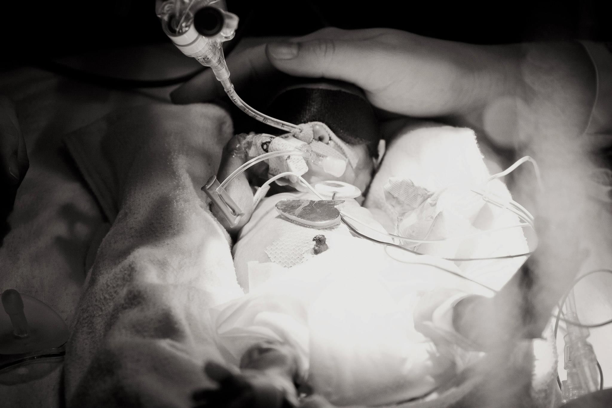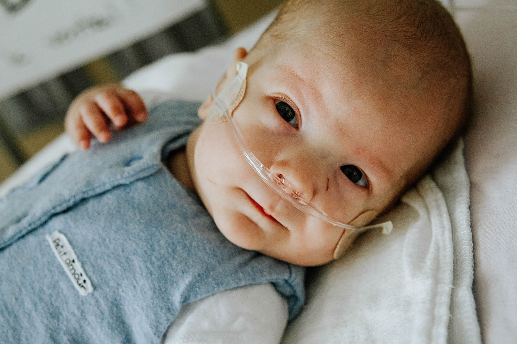 En néonatalogie, Loukian a eu un beau départ et a ensuite vécu des grandes montées et grandes descentes. Il y a eu des problèmes de CO2, l’opération de son canal artériel, de multiples intubations, une infection dans sa jambe à 7 semaines qui a changé toute la suite de sa vie et ensuite l’annonce de son trouble aux cordes vocales. Il était dépendant d’oxygène, prenait de nombreux médicaments et son départ était toujours reporté. Il y a eu de multiples arrêts respiratoires, des codes roses et des examens pour les yeux.