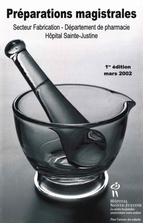Ce guide est la suite logique du livre de Préparations magistrales paru pour la première et unique fois en mars 2002 sous l’égide de Patrice Hildgen et Jean-Marc Forest, respectivement professeur à la faculté de pharmacie de l’université de Montréal et responsable du secteur Fabrication au CHU Sainte-Justine.