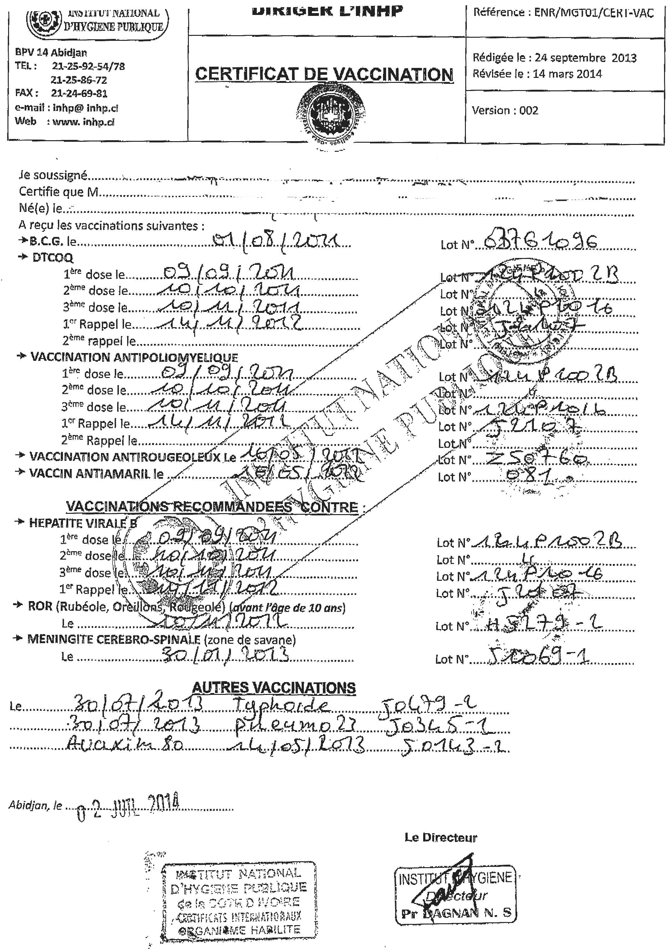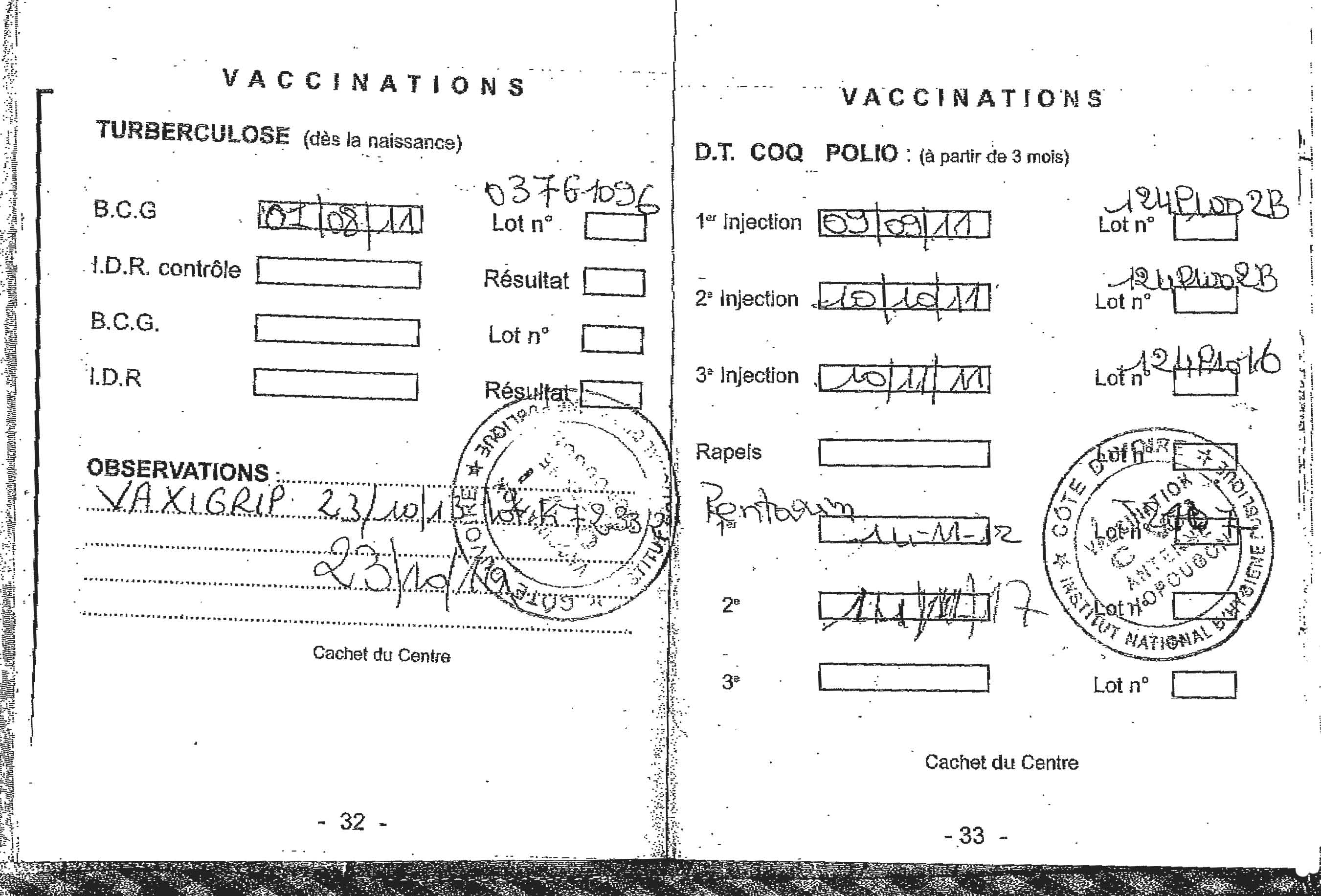 Particularités des carnets de vaccination