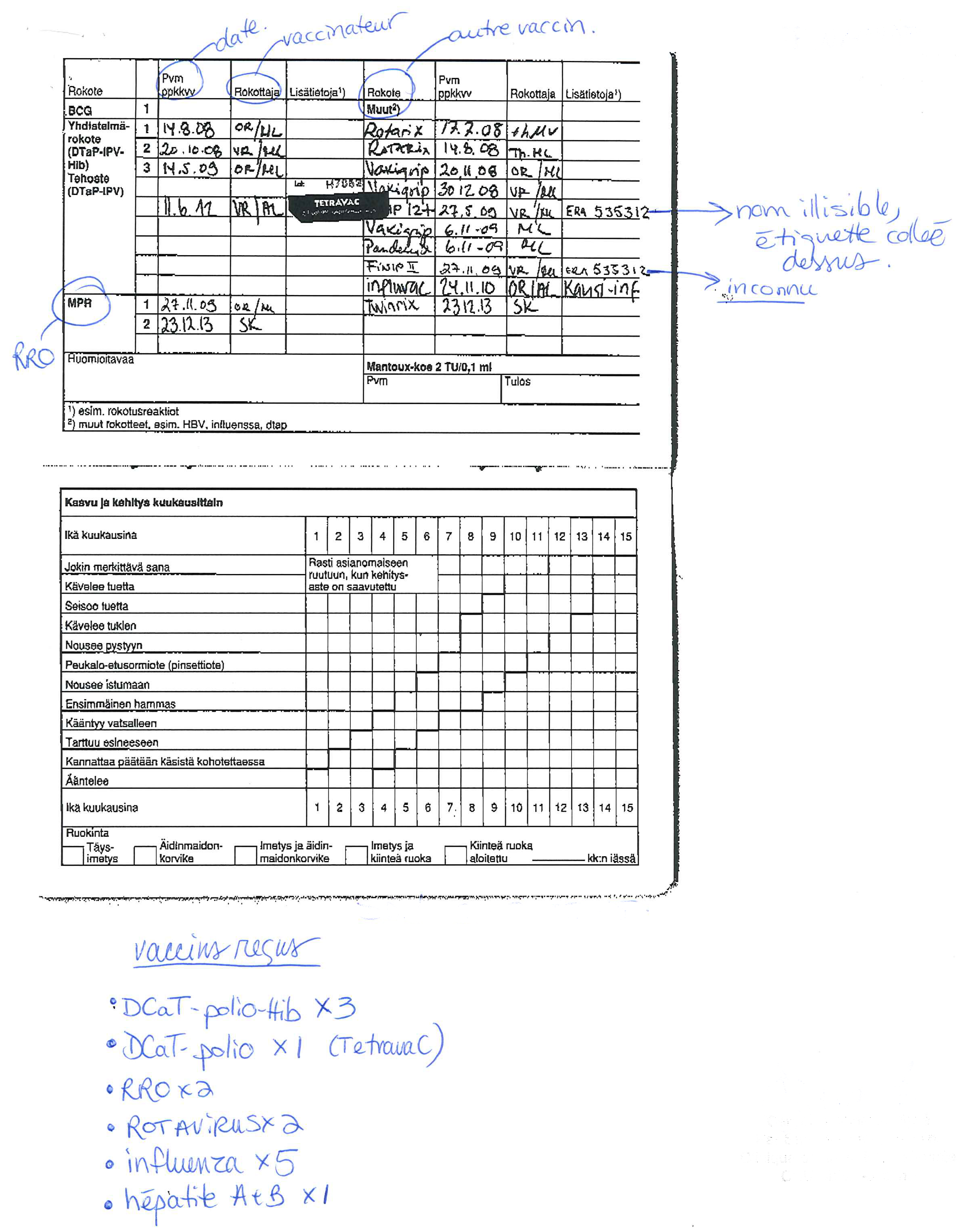 Particularités des carnets de vaccination